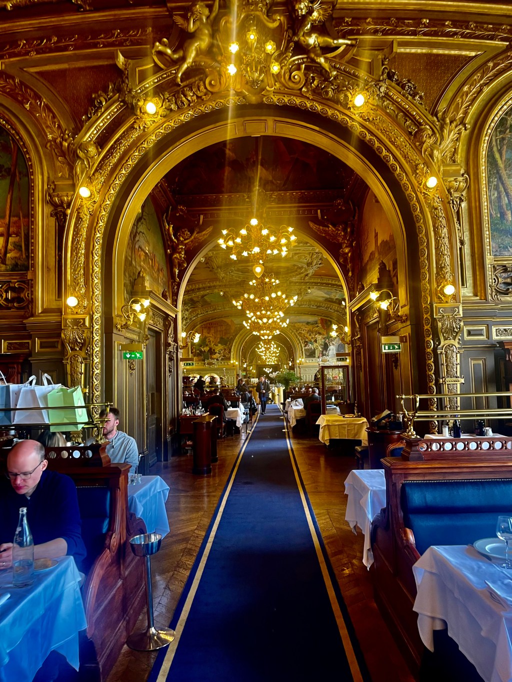 I still can’t wrap my head around the fact that this iconic restaurant is upstairs at Gare de Lyon – one of the nine mainline train stations in Paris – and there’s something strange and unexpected about going upstairs from the concourse and into this sumptuous, most decadent of gilded interiors, formerly the station buffet.