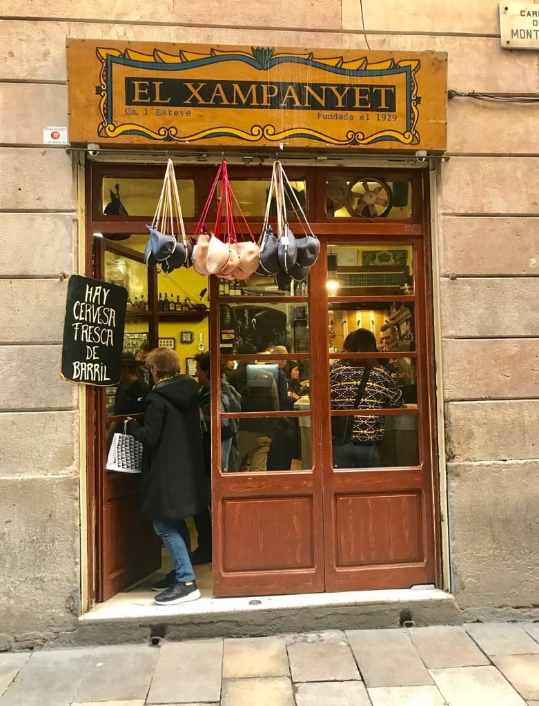 No reservations are possible at very traditional El Xampanyet, a tiny bar which specialises in anchovies, where you’ll have to fight for a seat and maybe settle for standing outside instead. I hope places like this never disappear from the city, as it is simply perfect. There are tapas on the bar and beakers of cava. We got three beakers and two tapas for €8. Be prepared to be packed in like sardines and make friends in this most intimate of atmospheres.