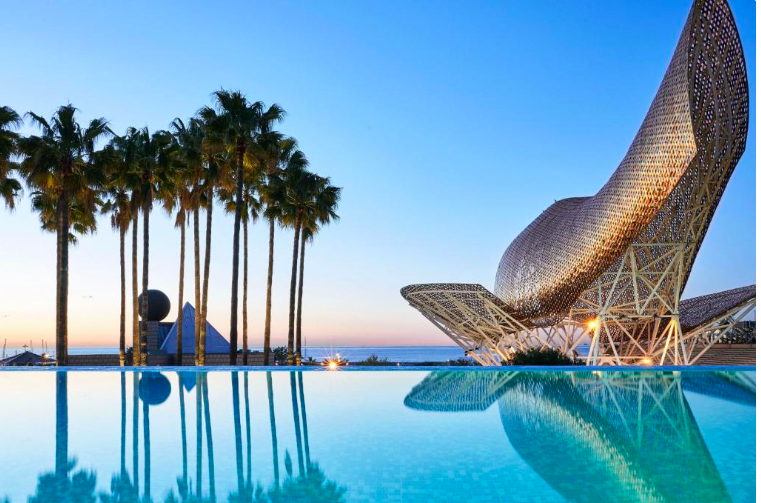 If you have a big budget, Hotel Arts Barcelona is a landmark, luxury hotel, right on the manmade beach, offering panoramic city and beach views. It’s a high rise which can be seen from almost wherever you are in the city and while not a beautiful, historic building, step inside and you are absorbed into its luxury.