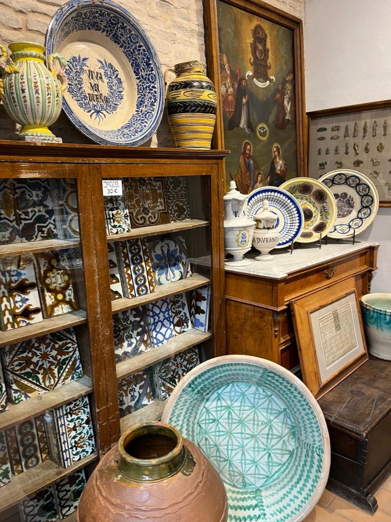 I had been thinking about visiting Seville for a while but what cemented it for me was seeing an image on gardener Sarah Raven’s Instagram account. She had posted pictures of an antique ceramic shop she had visited called Populart. I adore ceramics and, as we were going to Seville for my birthday, it was my call on the location, so later that week it was all booked, having searched online for our flights and hotel.