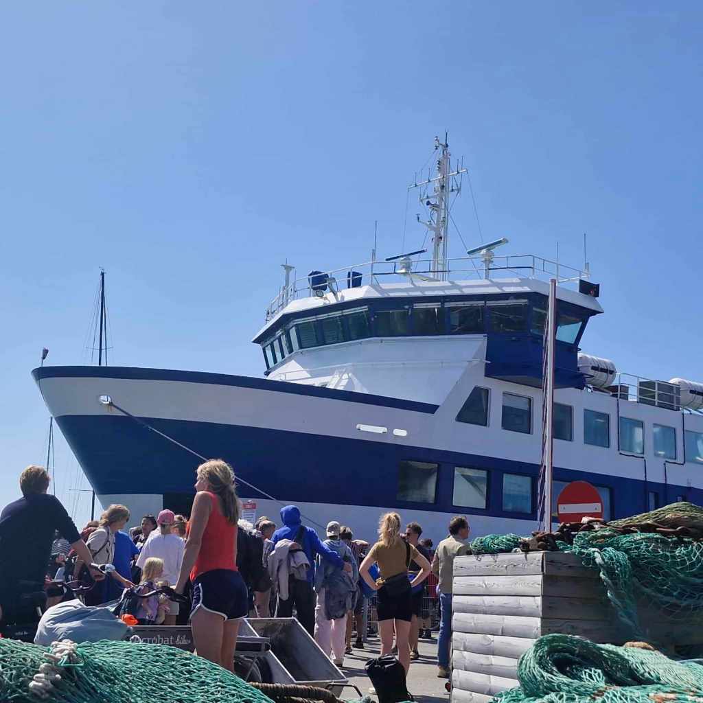 Most people go by ferry from Grenaa in Jutland, on the Danish mainland. The ferry trip takes three hours. In the high season, the ferry sails once every day, but only four times a week out of season. You have to book the tickets in advance and they’re often sold out (when we looked, tickets were around €10 each way).